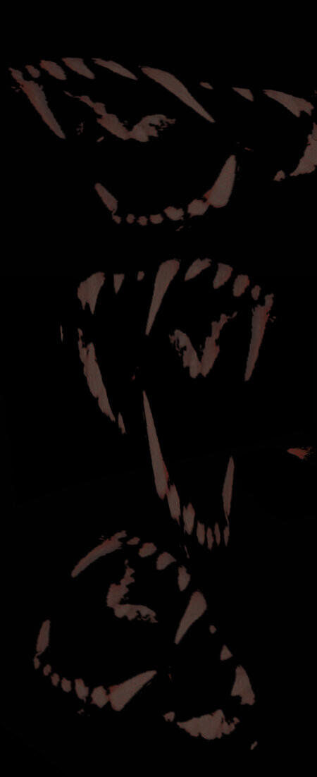 reforming his body to mirror Amon's biology, teeth have been whetted οΉ honed as WEAPONS fit for rending flesh from bone, coupled with nails' protein evolving into claws ββββββ efficient in dismantling bodies piece by piece. amplified soma has also gifted him the propensity to sustain οΉ survive FATAL attacks / wounds. Amon's immortality has been distributed through possession, stalling Akira's physical aging οΉ maintaining a freshly appearance of 20's manhood.while in his 'true' form, Devilman dons twin horn β like wings on either side of a furred crown, entirety of legs coated in fur down to clawed feet, οΉ a trigonal tipped tail. forehead is cast in a shade of crimson skin, piercing audits that are accentuated by stigmata. flesh on forearms are fissured, shaped into spikes for combat purposes. large bat β like wings sprout from his back, leaving behind binary scars that embellish his skin. in this form, he stands at a 14' zenith, but can heighten to a colossal 30'.